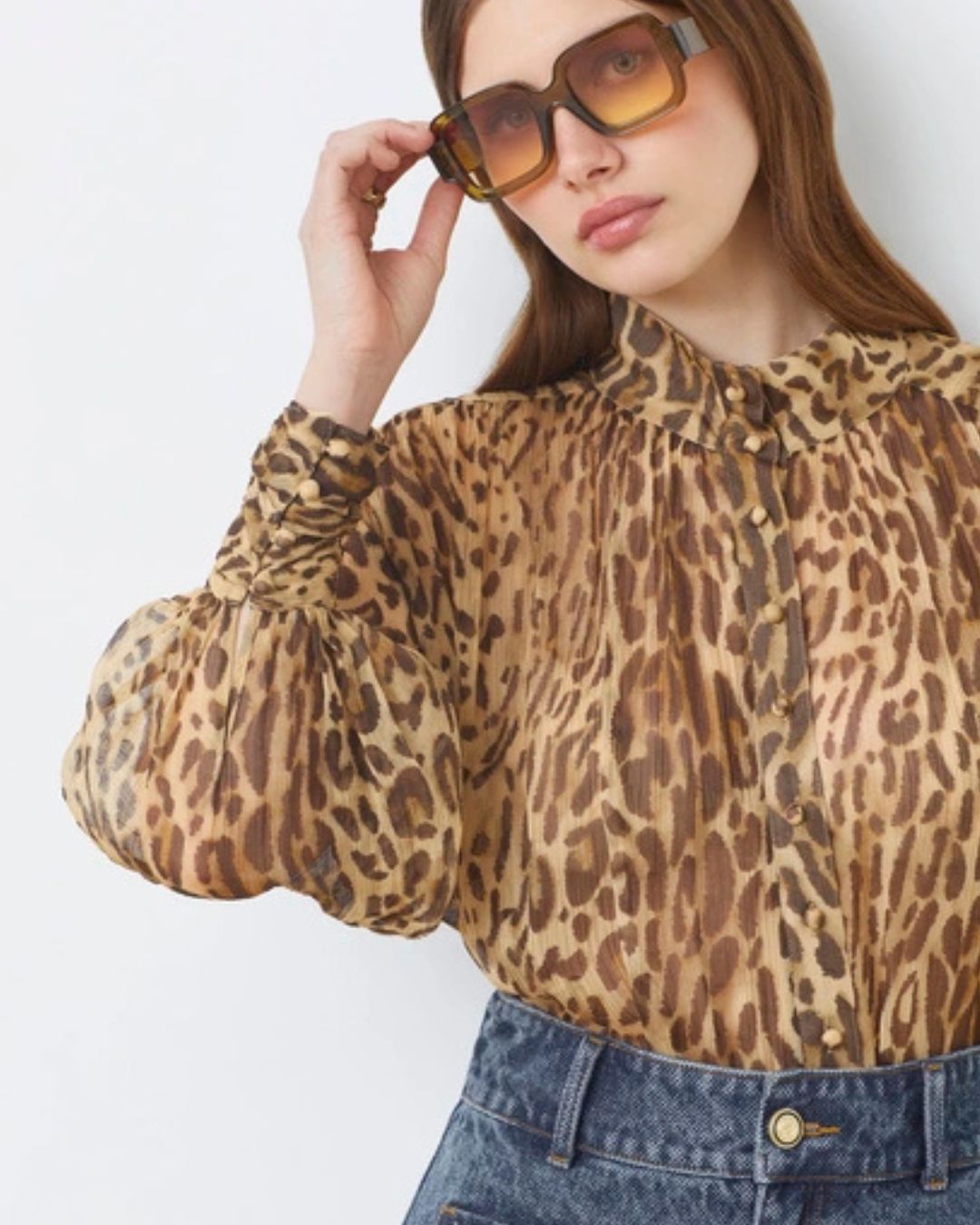 La camicia Lux è un capo raffinato che unisce leggerezza e carattere. Realizzata in voile beige con stampa leopardata, offre un tocco elegante e moderno. Il colletto alto e la chiusura con bottoni tono su tono donano un aspetto pulito e sofisticato, mentre le maniche lunghe leggermente sbuffate aggiungono volume e femminilità. Realizzata in viscosa certificata FSC, è morbida, fluida e sostenibile.